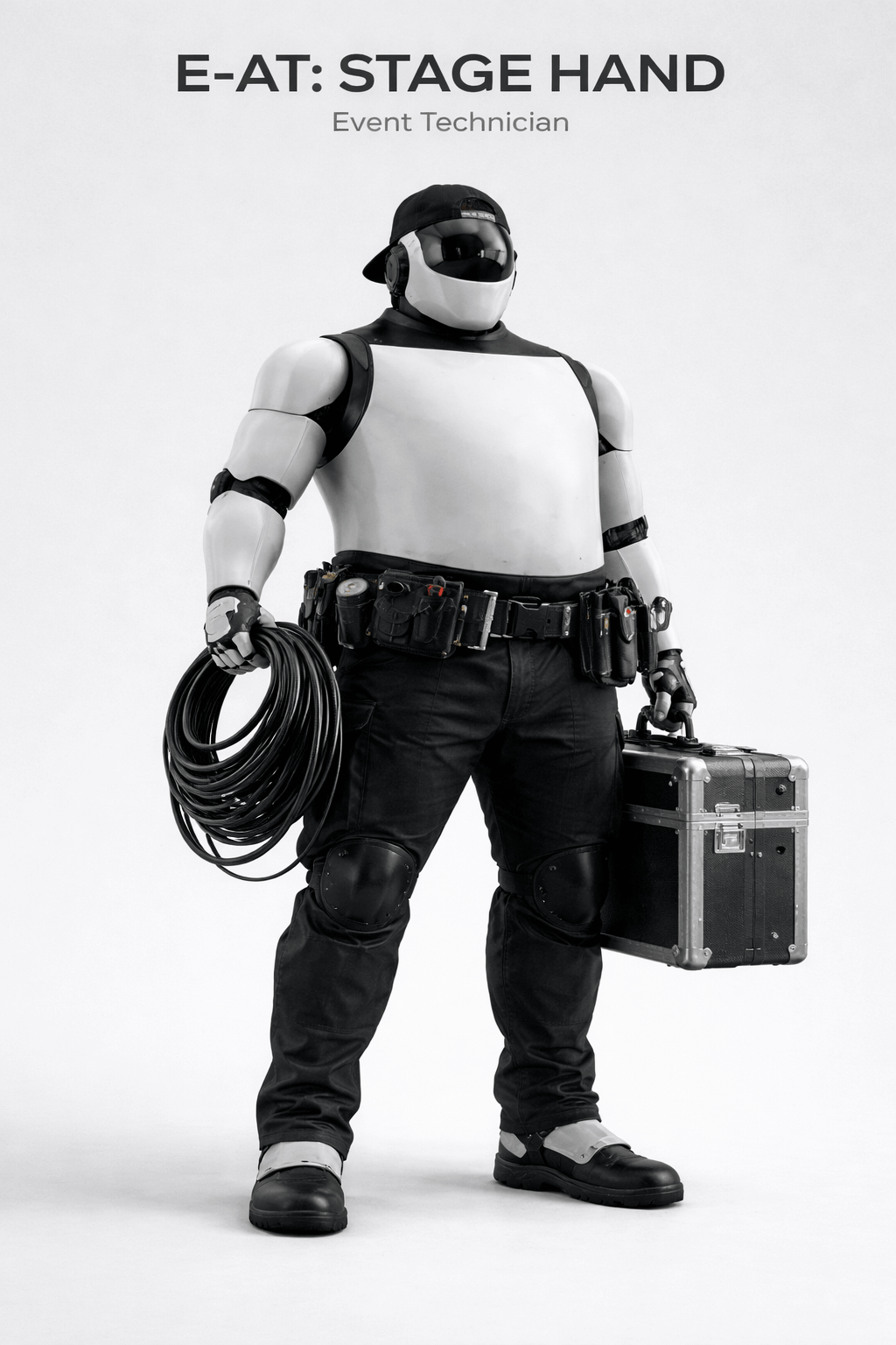 The E-AT Technician replaces entire production teams with a single autonomous unit capable of handling lighting, video, audio, LED, playback, and show control simultaneously.
