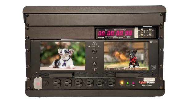 The mini 2x4k record rack is fast to deploy and comes packed with time code generator and 2TB drives.