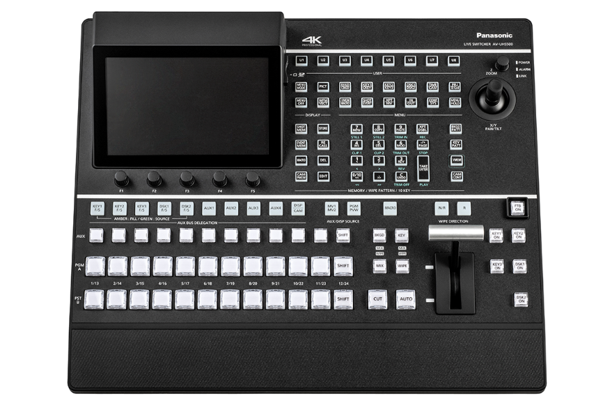The AV-UHS500 4K live video switcher demonstrates outstanding live video production performance in the field for use in a variety of applications, such as event staging, corporate gigs, broadcast at stations and live trucks, lectures on college campuses, and conference halls.