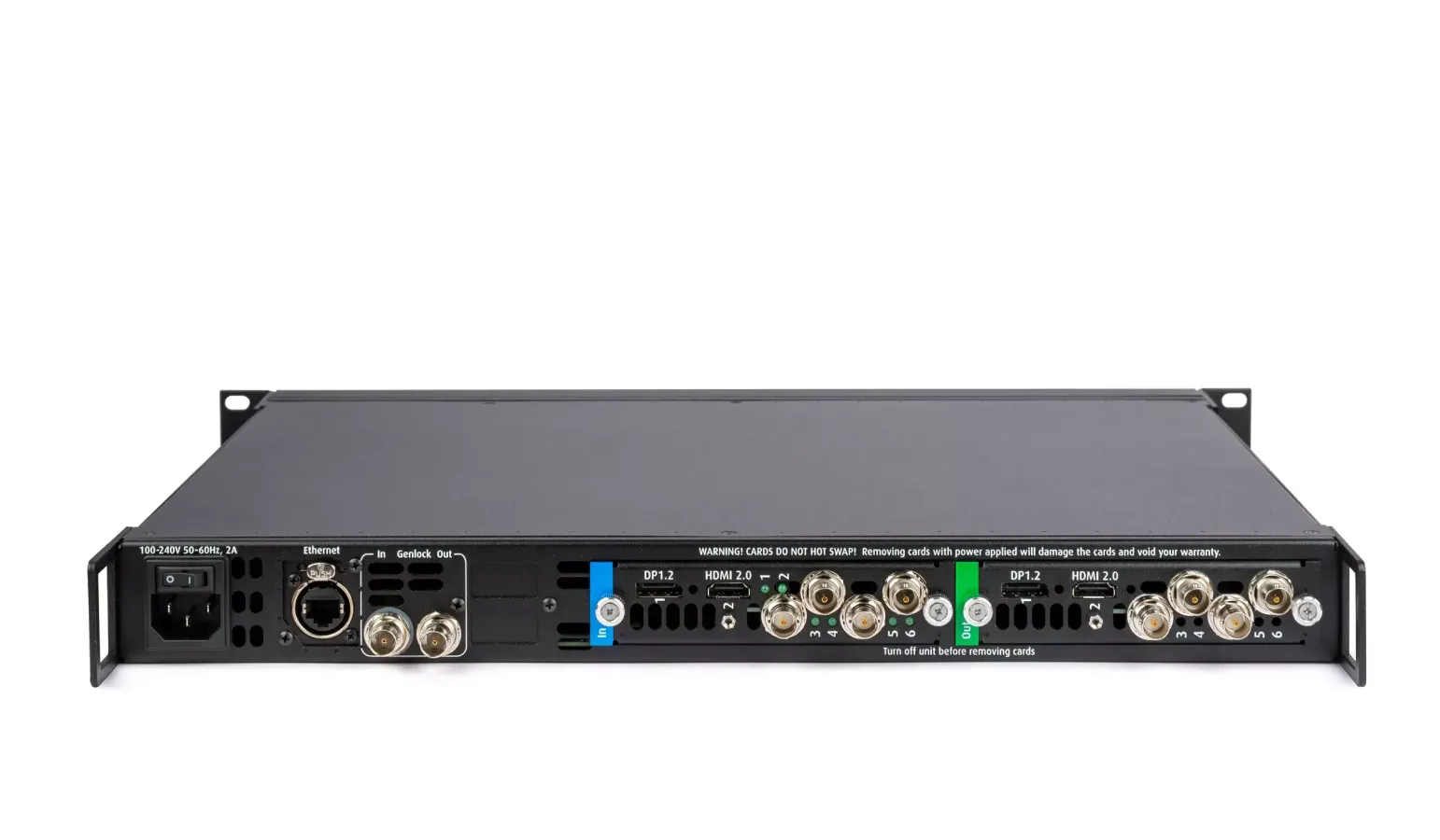 HDMI 2.0, DP 1.2, 2x 12G SDI or 4x 3G SDI, Genlock