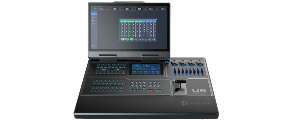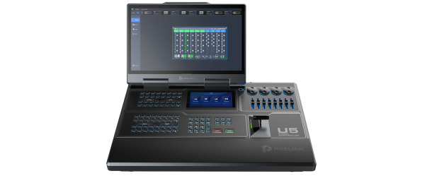 The U5 event controller comes with a compact size and lightweight ruggedized housing, 87 user-programmable LCD buttons, four encoders and eight faders, a high-resolution T-bar, etc. to bring you the maximum ease of use for your events. What’s more, the stunning design of 21.5” Main Touchscreen and 8” Smart Touchscreen enables the more visualized and convenient operations, as well as a foldable design makes it easily survive in any road trips. All these make it the perfect solution for various spectacular live events.